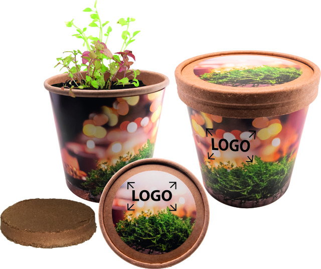 Description: Harvest fresh herbs for your Christmas feast. You can do this with our seeds in natural kraft paper cup. Your advertising or a personalisation of the band and the label starts with 250 pieces.