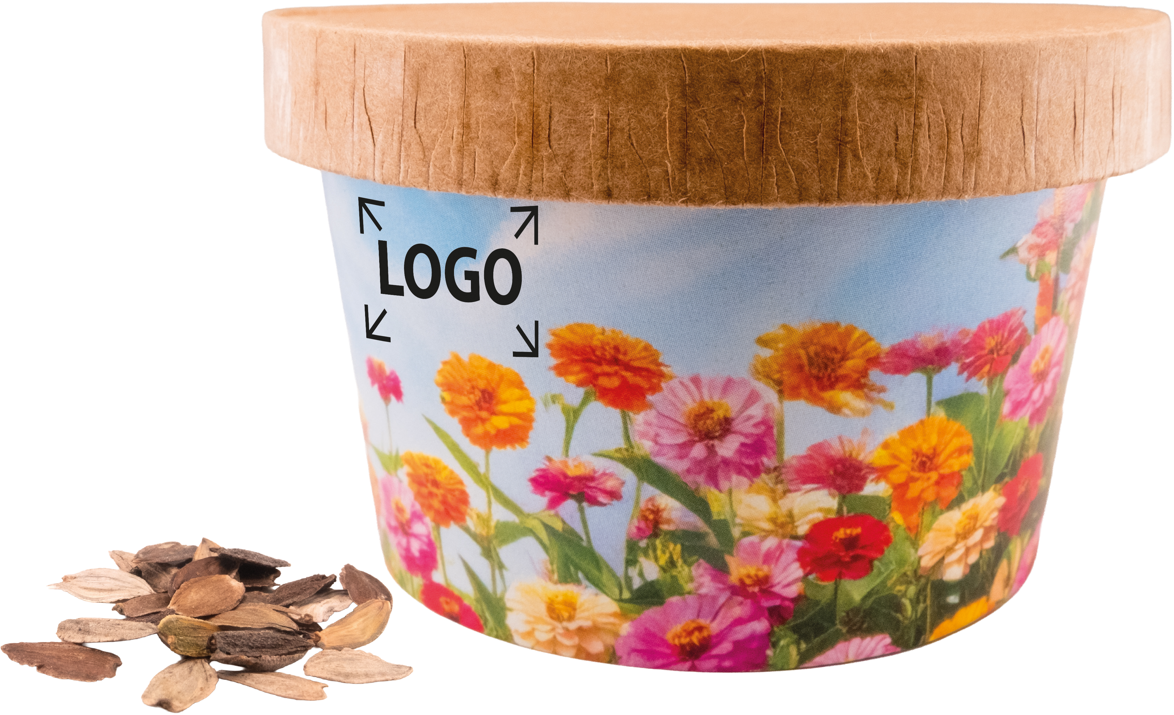 Description: Notre Gobelet Fleurs est un cadeau publicitaire coloré et plein de charme qui saura séduire vos clients. Les fleurs éclatantes du zinnia apportent de magnifiques touches de couleur à tous les balcons et massifs. Un marquage ou une personnalisation en quadri de la bande papier est possible à partir de 250 exemplaires.