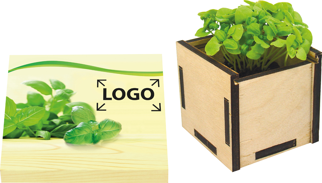 Description: Cette boîte à bricoler est plate et de là idéale pour votre envoi par poste. Les pièces en bois sont vite assemBLÉes. Voilà votre boîte de semis. Le mode d’emploi est imprimé sur le verso du fourreau à papier. Marquage possible sur le motif standard du fourreau ou votre personnalisation en quadri à partir de 250 exemplaires.