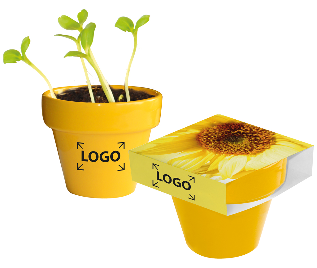 Description: Ce pot est coloré comme la nature. Les coloris disponibles sont blanc, jaune et rouge. Les graines peuvent être choisies selon votre sujet de campagne promotionnelle. Dans le pot vous trouverez la plaquette de terre et les graines. Marquage possible sur le motif standard de la bande papier ou votre personnalisation en quadri à partir de 250 exemplaires. L’autre possibilité de marquage est la tampographie sur le pot à partir de 100 exemplaires.