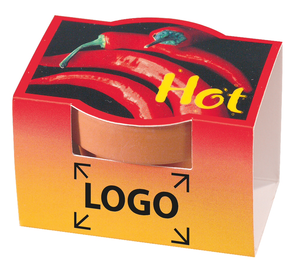Composition: pot en terre cuite Ø 4 cm, plaquette de terre, graines: piment épicé