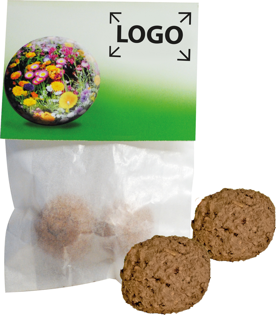 Description: La bille en argile faite à la main est un vrai miracle naturel. L’argile est pleine de graines. Il suffit de la presser dans le terreau et d’arroser. Dans peu de temps les graines poussent. Pour votre marquage vous pouvez utiliser le recto. Une personnalisation en quadri du cavalier est possible à partir de 250 exemplaires.