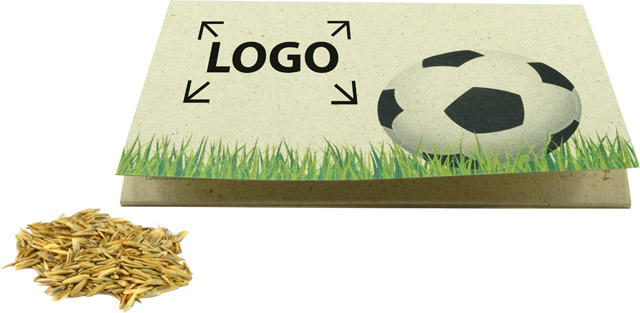 Description: Soutenable et tendance. Ainsi se présent la carte en papier d’herbe avec les graines de gazon. Un giveaway plat, idéal pour vos mailing et pour l‘évènement sportif annoncé. Votre marquage ou une personnalisation en quadri de la carte à volet est possible à partir de 250 exemplaires.
