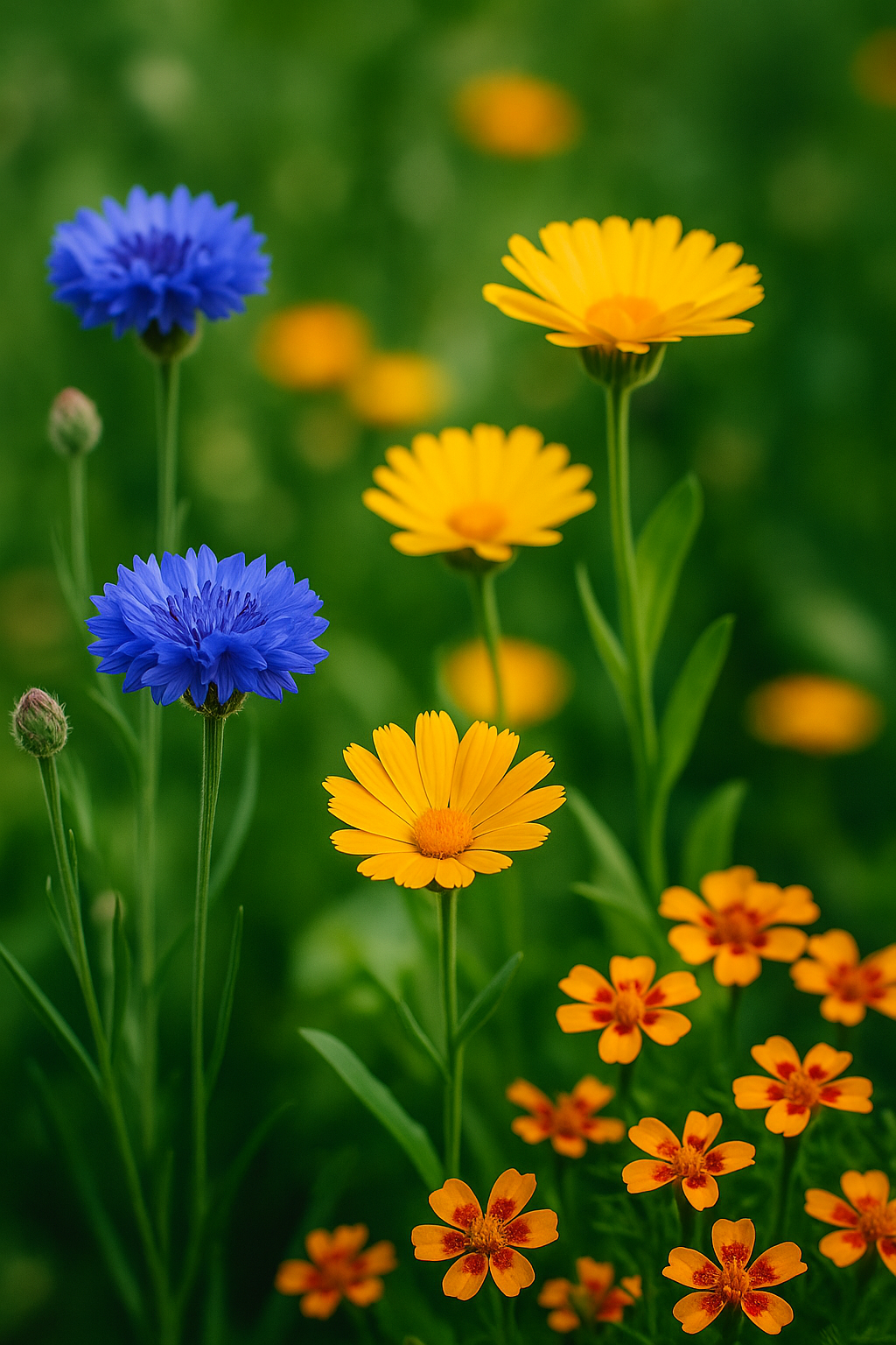 Composition: plaquette de terre, graines, graines: bleuet, souci, tagète tenuifolia