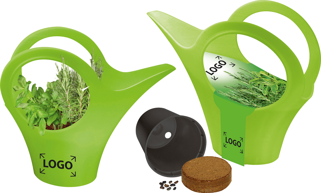Description: L’arrosoir de style de la maison Koziol est exclusivement en vente chez nous. Utilisez-le en tant que conteneur de semis pour votre oasis verte d’intérieur. Le kit est complet avec petit pot, plaquette de terre et graines. Après avoir rempoté la plante, vous pouvez l’utiliser en tant qu’arrosoir de style ou vase de fleurs ou conteneur pour ustensiles. Le marquage est possible sur la bande papier. Une personnalisation est possible à partir de 250 exemplaires. Tampographie sur l'arrosoir à partir de 100 exemplaires.