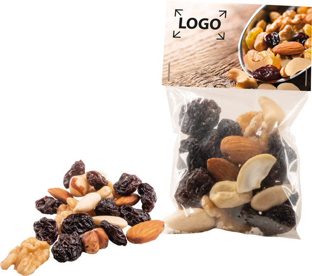 Description: Une alimentation saine pour le cerveau est toujours importante. Les noix et fruits secs peuvent avoir un effet bénéfique pour les fonctions cognitives et sont à la fois une collation délicieuse. Votre marquage ou une personnalisation en quadri du cavalier est possible à partir