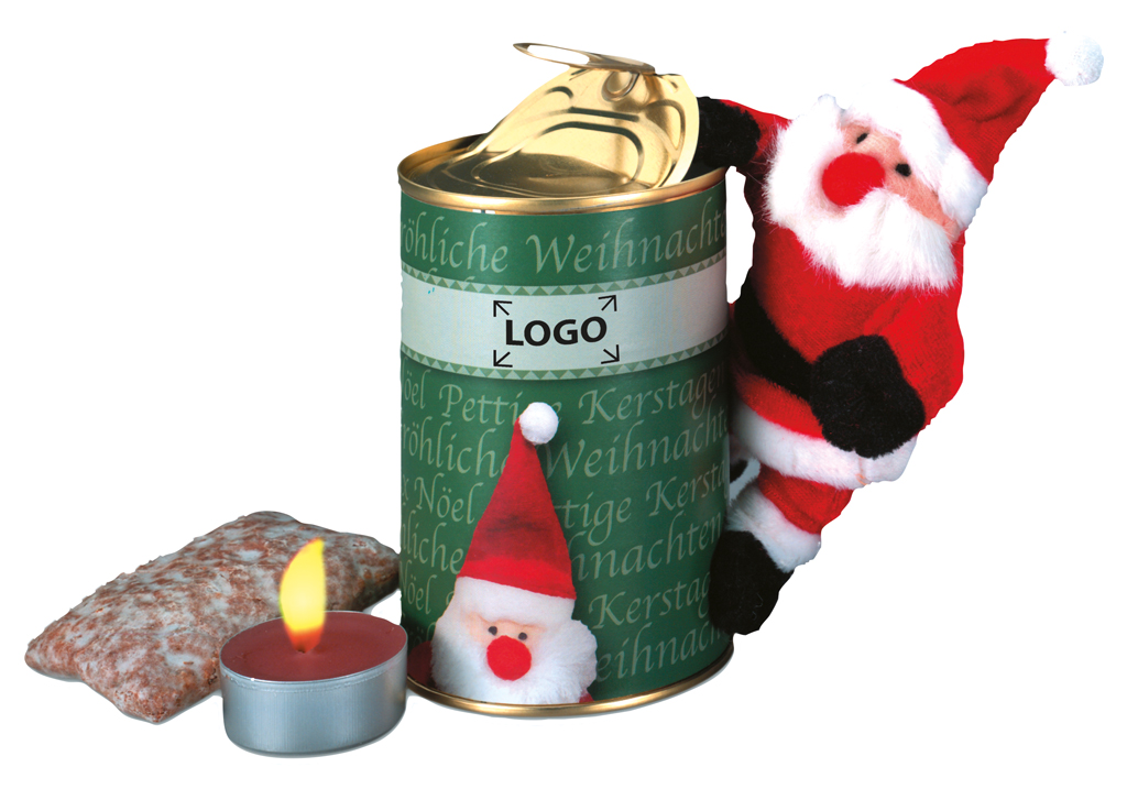 Description: Une canette surprise avec un Père Noël magnétique, un petit gâteau aux épices, une bougie parfumée - de quoi passer des moments de Noel agréables. Marquage à partir de 100 exemplaires sur le motif standard ou personnalisation en quadri de la bande papier à partir de 100 exemplaires.