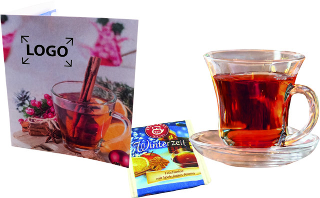 Description: Un giveaway parfait pour la période hivernale. Offrez à vos clients une petite pause pour se réchauffer avec notre thé d'hiver. Un marquage ou votre personnalisation en quadri de la carte est possible à partir de 250 exemplaires.