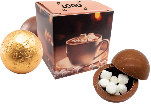Description: La boule de chocolat fourrée de guimauve développe une saveur toute particulière dès qu'elle est dissoute dans du lait chaud. Un plaisir délicieux pendant la saison froide. Un marquage ou une personnalisation en quadri du cube est réalisable à partir de 250 exemplaires.