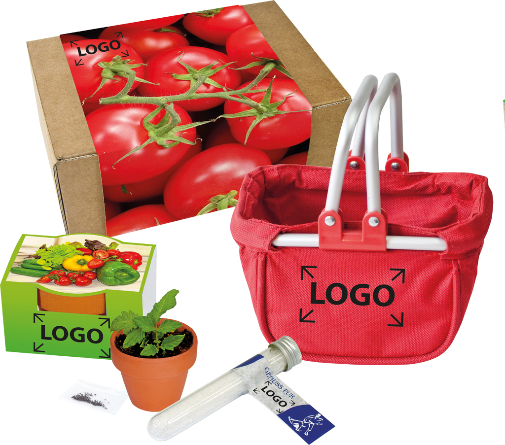 Beschreibung: Unser Utensilo „Naschgemüse“ ist ein komplettes Anzucht-Set für Naschtomaten mit Meersalz und einem leckeren Rezept auf der Banderole. Der Werbedruck erfolgt auf dem Standardmotiv, ab 100 Stück ist eine individuelle Banderolengestaltung möglich
