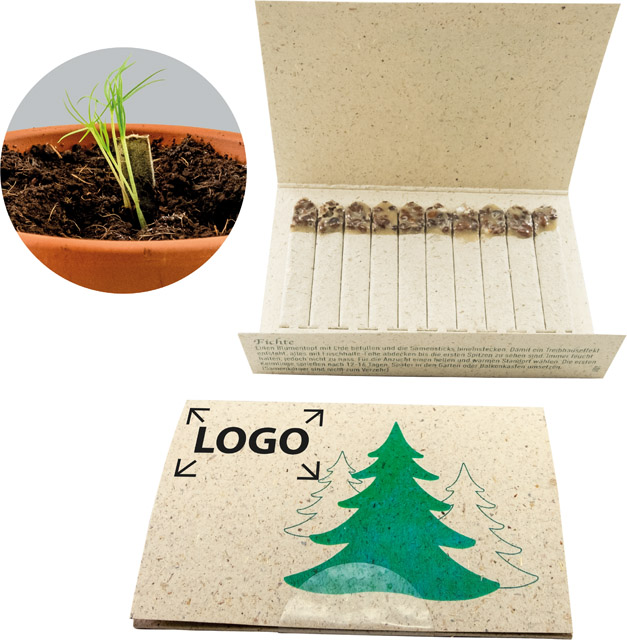 Beschreibung: Ein naturiges und nachhaltiges Giveaway aus Graspapier mit Fichten-Samen für Ihren Weihnachtsbaum. Das Booklet bietet viel Platz für Ihren Werbeeindruck im Standardmotiv oder auch für Ihre eigene Gestaltung ab 250 Stück.