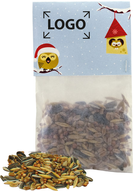 Beschreibung: Ein sympathisches Giveaway nicht nur für Vogelliebhaber. 20 g Wildvogelfutter sind in der Pergamintüte enthalten. Ihr Werbeeindruck oder eine individuelle Gestaltung des Headers ist ab 250 Stück möglich.