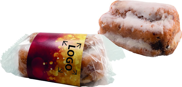 Description: A fine Christmas stollen made from exquisite ingredients. The classic in mini format is the perfect gift during the Advent season. There is space for your logo in the standard design of the band. Alternatively, the band can be completely personalised, also starting with 250 pieces.